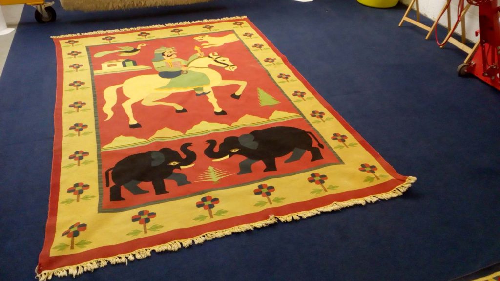 Some of the Oriental Rugs that we clean, have fascinating stories behind them. This rug, one of my favourites, Honours and tells the story of a brave horse, that went into battle against elephants. The horse sadly died of its wounds but not before saving its famous rider.